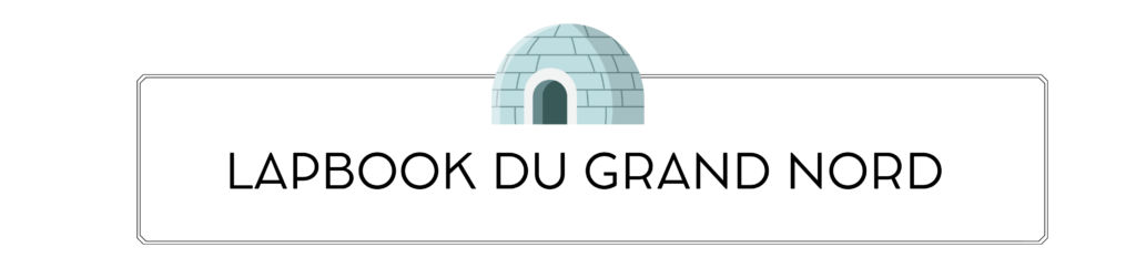 Dans notre Lapbook, nous avons intégré une carte du monde, une présentation du Grand Nord et des trois types de sol, les animaux par zone, une partie sur la vie des inuits et une partie sur les saisons.